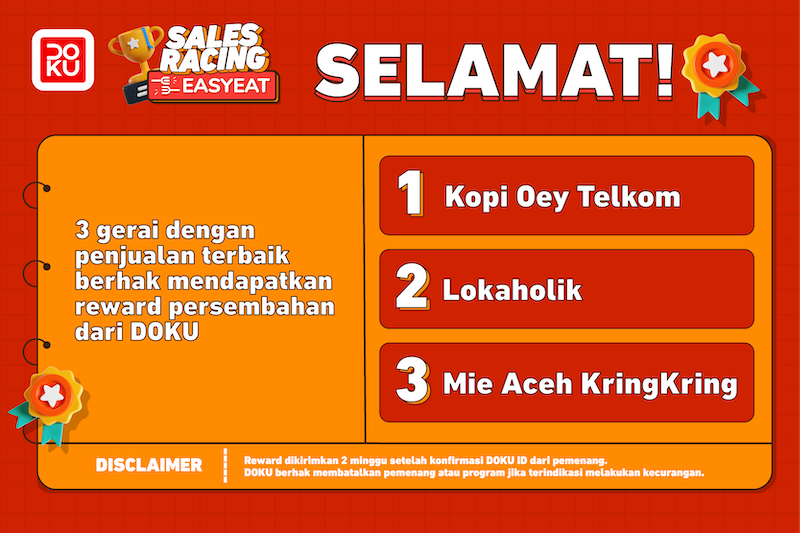 - DOKU berhak membatalkan pemenang atau program jika terindikasi melakukan kecurangan. Ayo tingkatkan terus transaksi di gerai Anda!